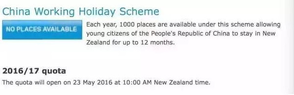 2016/17年度新西兰打工假日签证(working holiday